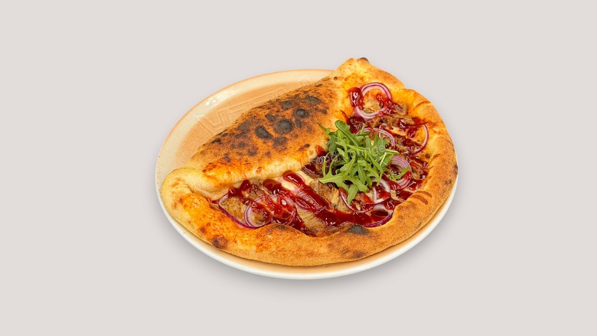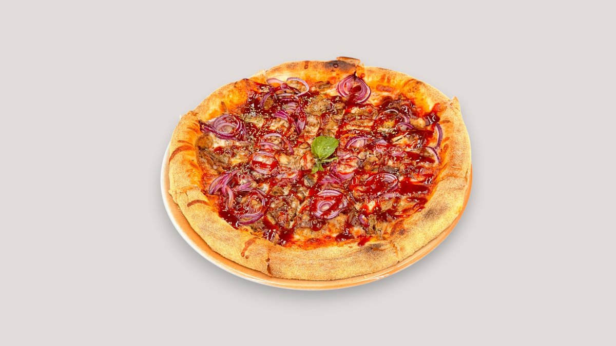 mit Pulled Pork, roten Zwiebeln und Barbecuesoße