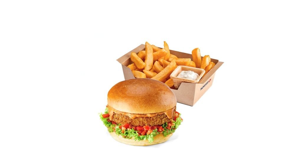 Knusprig paniert und 100 % plant based, aus Reis und Erbsenprotein, mit feinem Fischgeschmack. Abgerundet mit Remouladensauce im Weizenbrötchen, maritimer Genuss ganz ohne Fisch!