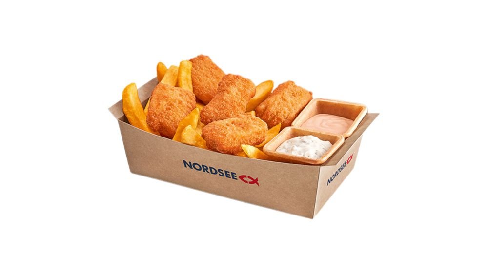 Knusprig, sättigend, einfach gut: Zarte Stücke vom Alaska Seelachsfilet mit goldenen Pommes und einer Sauce nach Wahl. Perfekt für alle, die es herzhaft lieben.