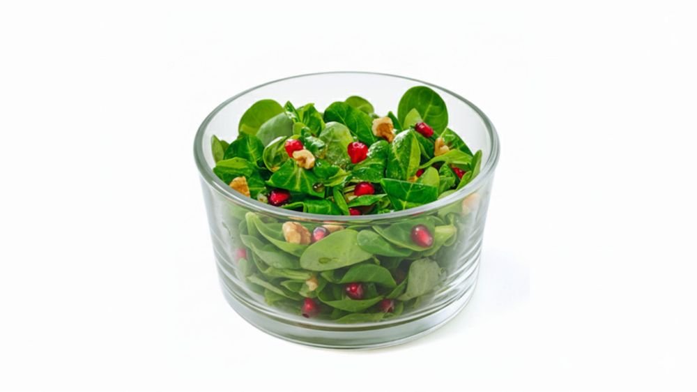 Knackiger Feldsalat mit Granatapfel- und Walnusskernen, dazu Dressing nach Wahl.