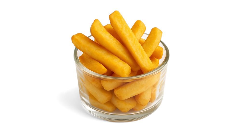 Knusprig, goldgelb, unwiderstehlich: Unsere extra dicken Pommes frites sind die ideale Beilage – perfekt zum Dippen und der beste Buddy für deinen Lieblingssnack.