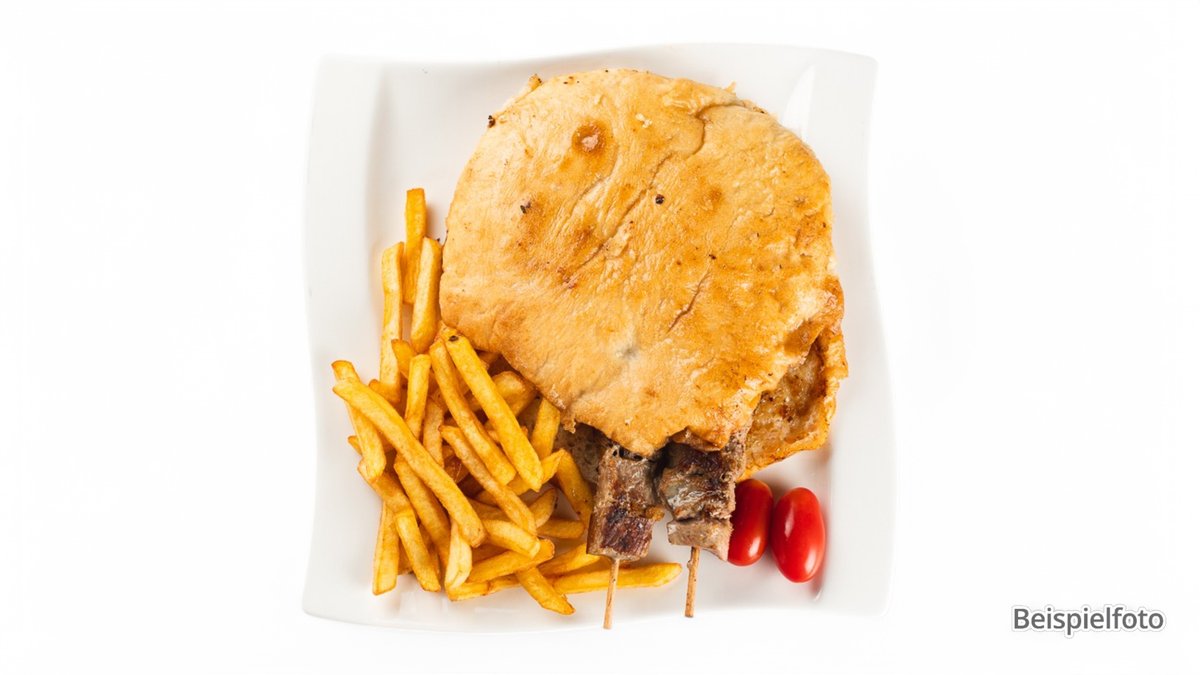 mit Fladenbrot, GemĂĽse und Pommes frites
