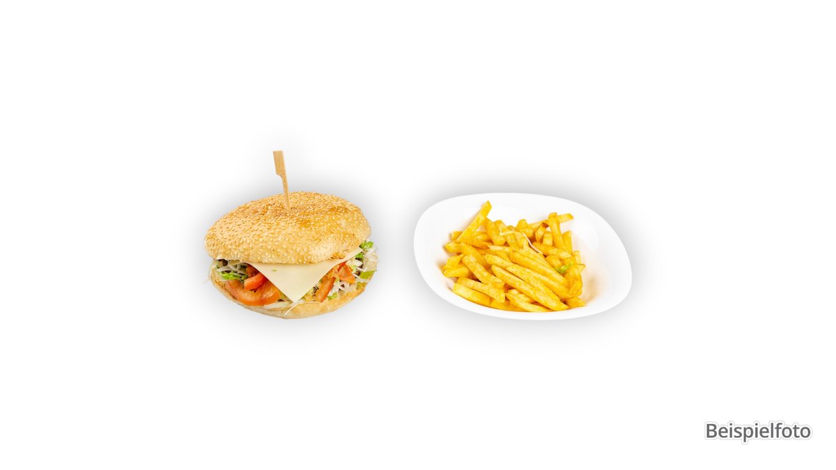 alle Menüs werden mit zwei Burgern und Pommes frites serviert