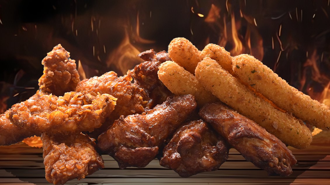 mit 5x Hausgemachte Chicken Bites, 5x Chicken Wings und 5x Mozzarella Sticks