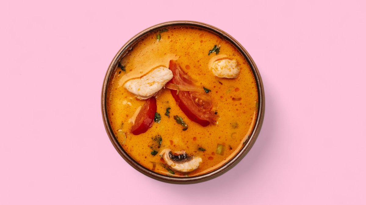 leichte Kokossuppe, Huhn, Champignons, Tomate