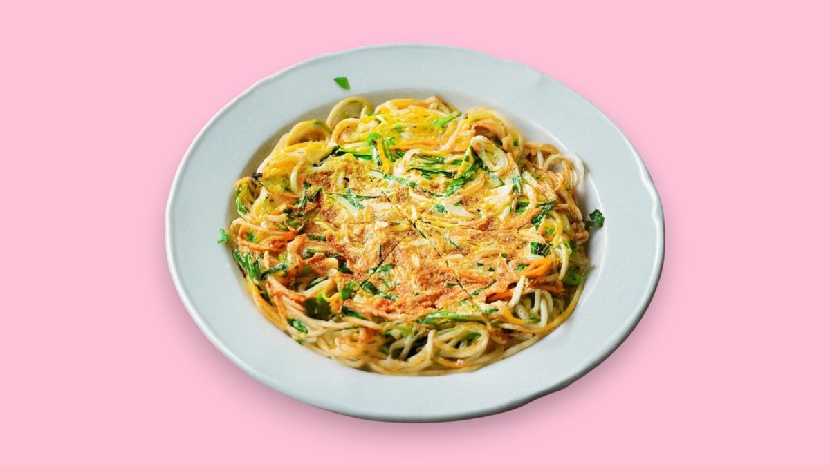 Pajeon, auch bekannt als Gemüse-Pfannkuchen, ist ein Gericht, bei dem Gemüse wie Karotten, Zucchini, Zwiebeln, Frühlingszwiebeln und Knoblauch in einen Teig eingelegt und gebacken werden, um eine Vielzahl von Aromen auf einmal zu erhalten. Es reicht vielleicht nicht für eine vollständige Mahlzeit, aber es ist ein toller Snack mit Getränke. Pajeon wird mit Sojasauce serviert.