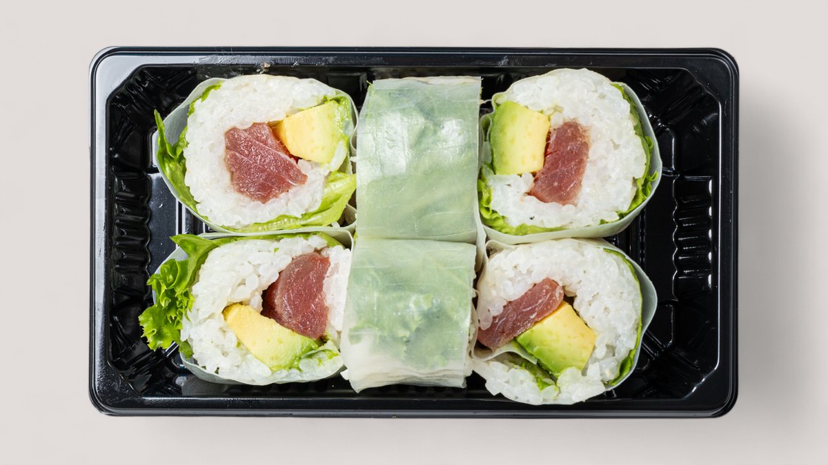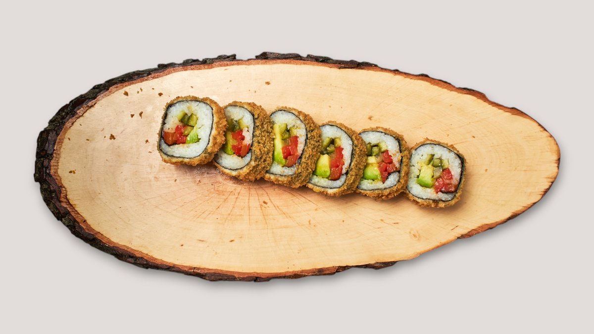 jede Portion enthält 6 Stück und wird mit Salat und Avocado zubereitet („Gurken Roll“ und „Shake Flake Roll“ werden ohne Salat und Avocado zubereitet und „Seechicken Roll“ wird ohne Avocado zubereitet)