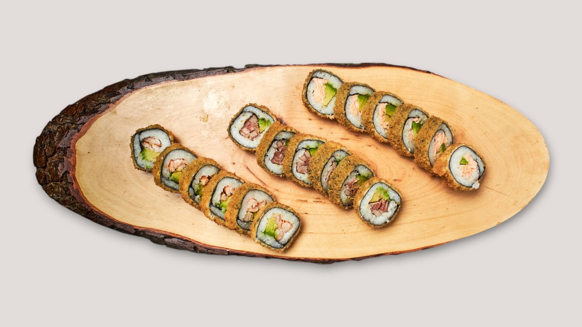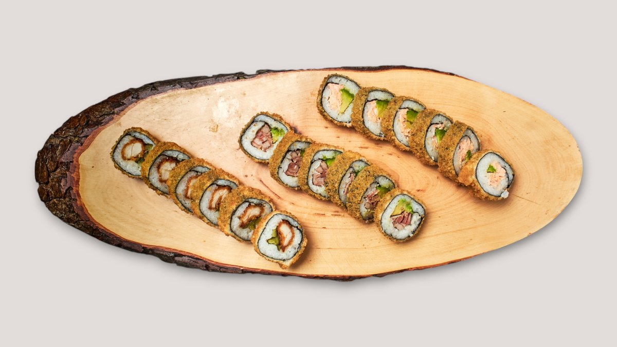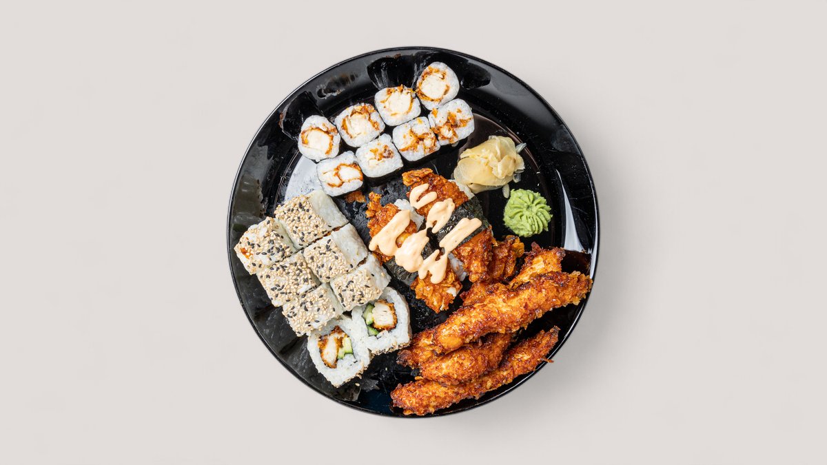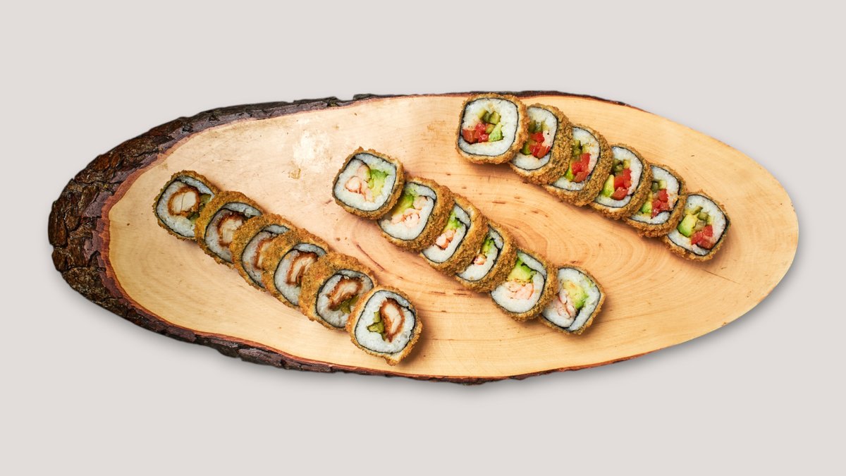 22 Stück, scharf 8x Crispy Maki 2x Crispy Chicken Nigiri 8x Crispy Inside Out 4x Crispy Chicken Sticks