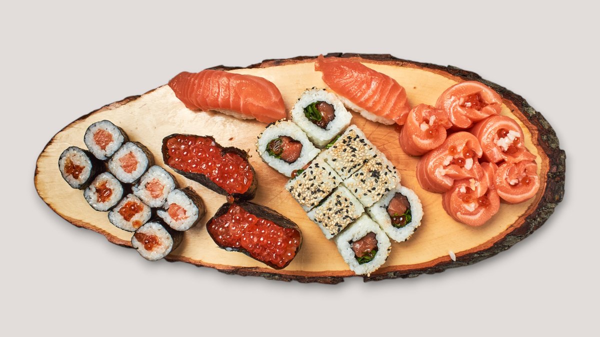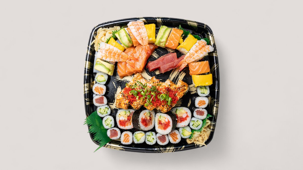 50 Stück 4x Shake Maki 4x Tekka Maki 4x Kappa Cheese Maki 4x Avocado Cheese Maki 8x Yuma Special Inside Out 4x Veggie Ampel Inside Out 4x Shake Surimi 4x Mango Chicken Inside Out 3x Salmon Sashimi 2x Maguro 3x Garnelen 4x Mix Futo