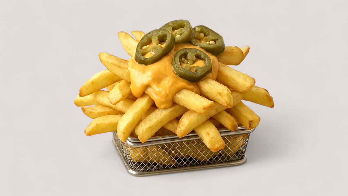 Pommes mit pikanter Käsesoße und Jalapenos