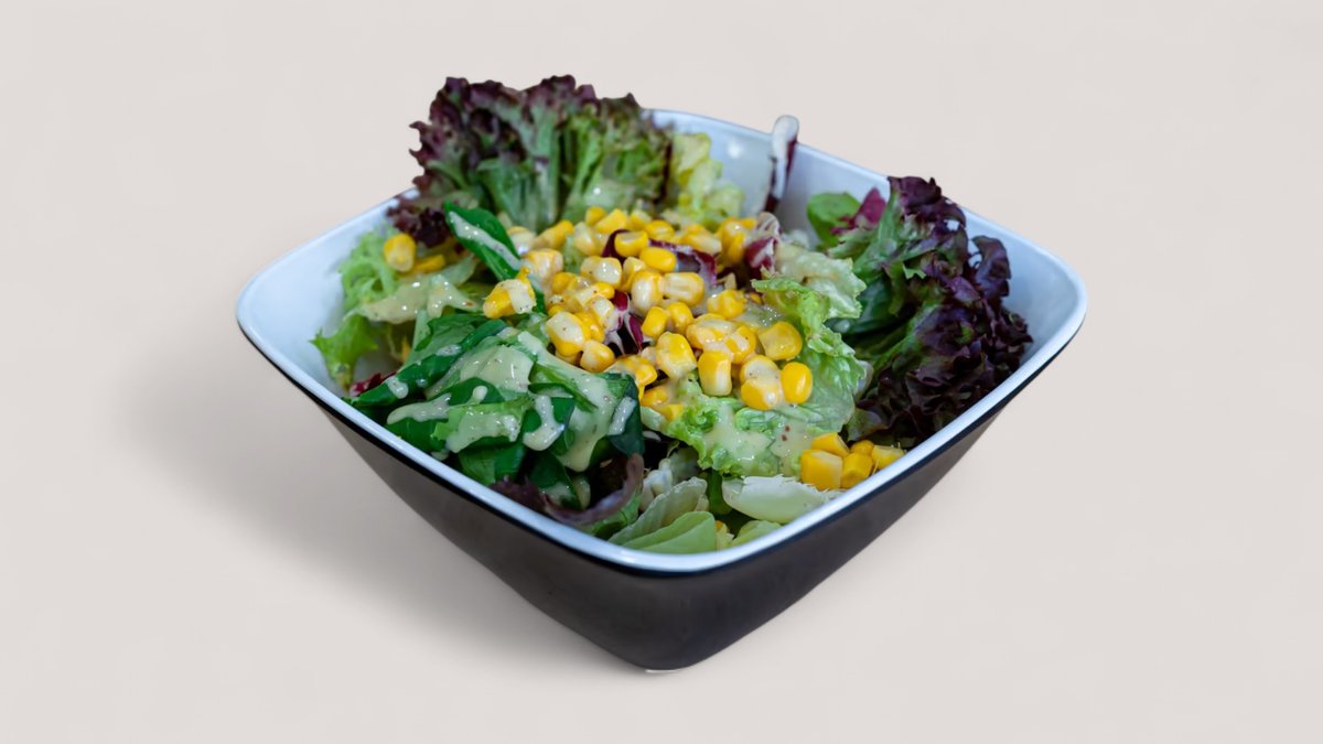 GrĂĽner Salatmix mit Mais und Honig Senf Dressing