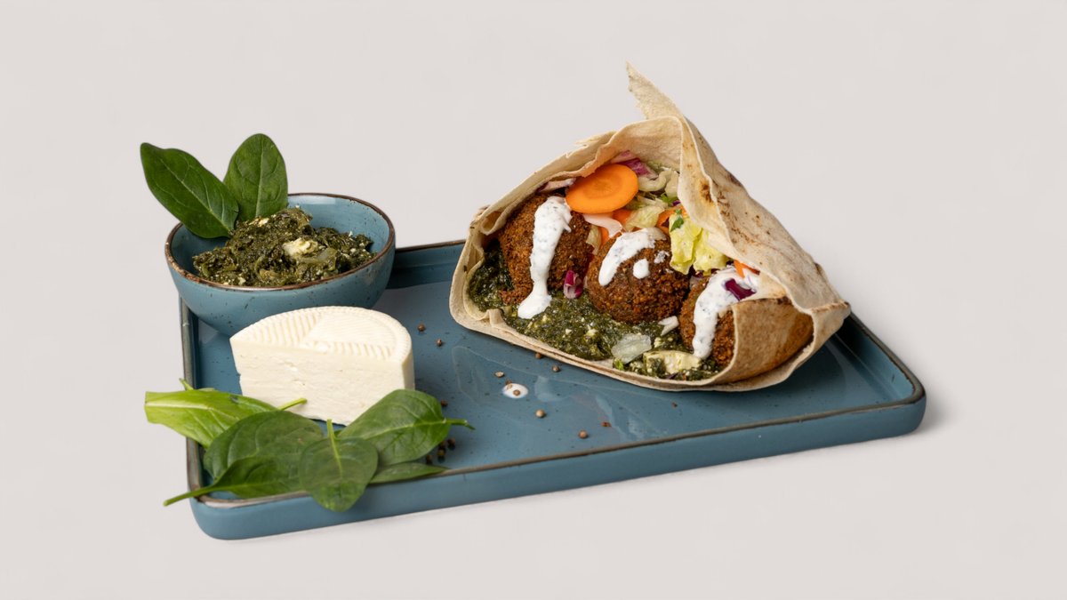 Unser Klassiker Falafel im Brot. 3x Falafel-Bällchen, im arabischen Fladenbrot mit gemischtem Salat und dem Star des Gerichts einer Hauptsoße wie z.B. Hummus, einer Toppingsoße und für die die es gerne schärfer mögen ein kleiner Spritzer Chilisoße.