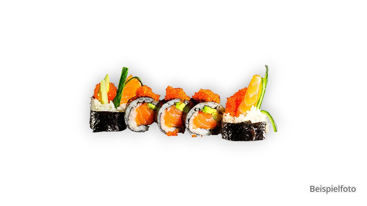 4x Gurke Maki 4x Avocado Maki 4x Paprika Maki 4x Mango Maki 2x Avocado Nigiri