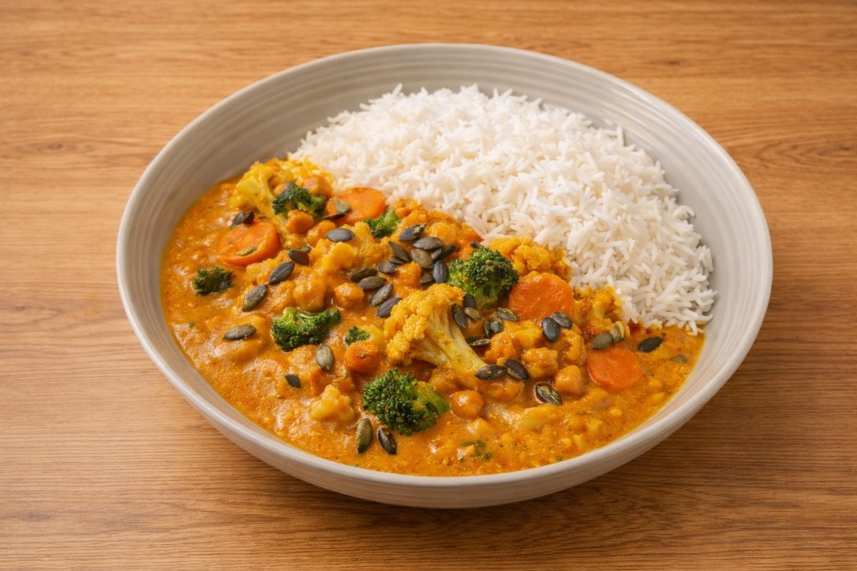 🌱🍛🥦🥕 Veganes Kichererbsen-Gemüsecurry mit Duftreis