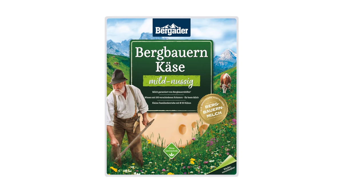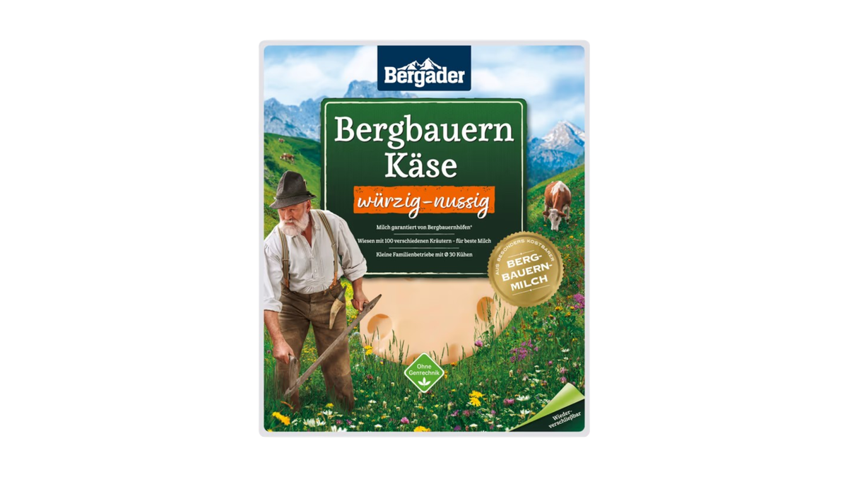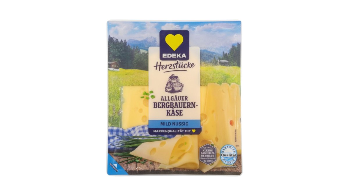 EDEKA Herzstücke Allgäür Bergbauernkäse mild-nussig in Scheiben 45% GQB, 150 g
