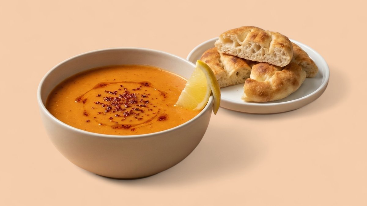 türkische Linsensuppe mit Chili, Zitrone und einer Beilage deiner Wahl