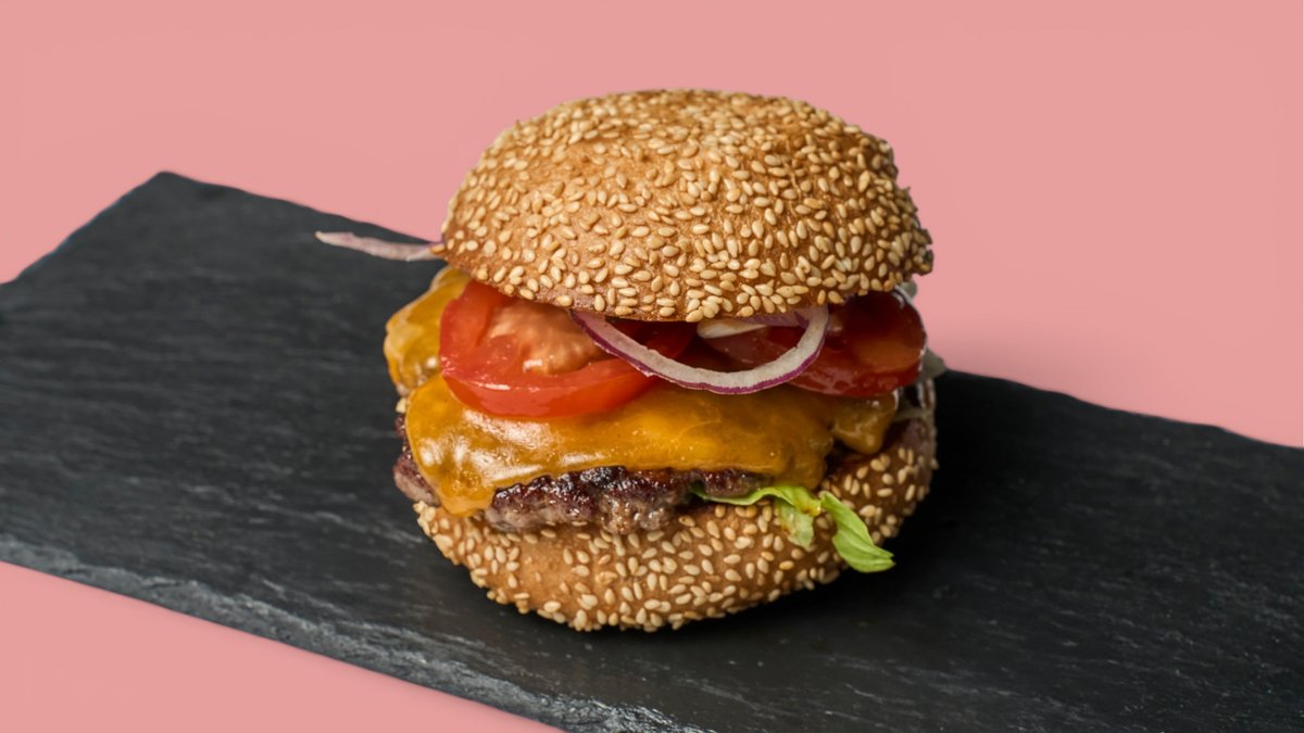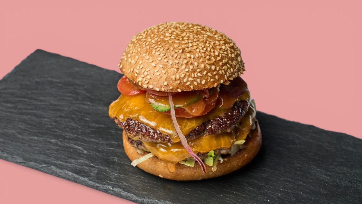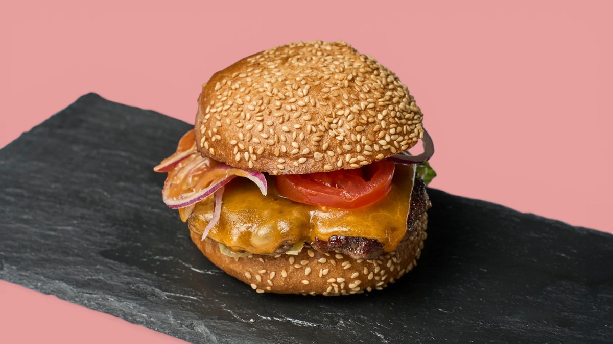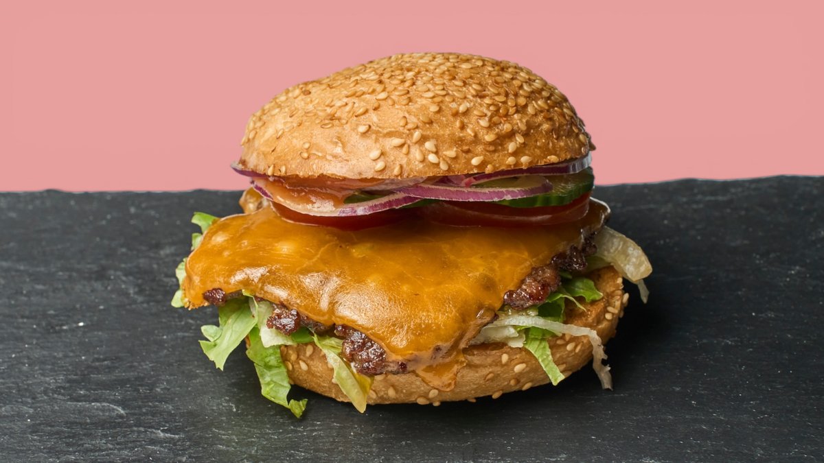 mit 2x 125 g Black Angus Rind, Cheddar Classic Soße, Salat, Zwiebel, Tomate, Gurke, Standard-Beläge und einer Brötchensorte deiner Wahl