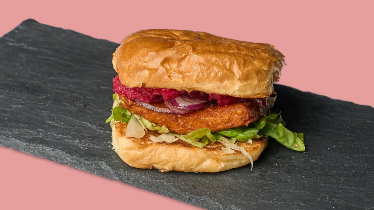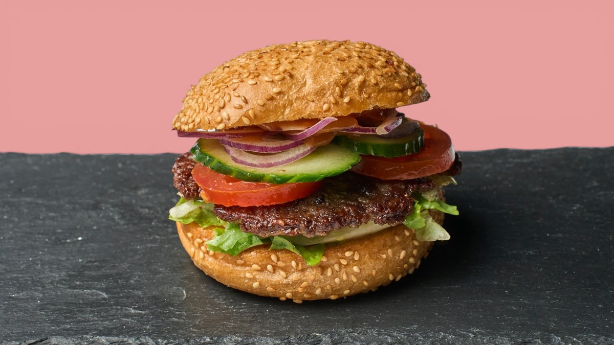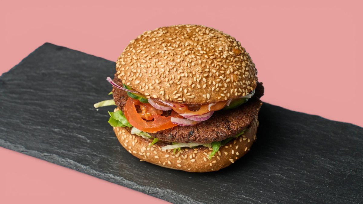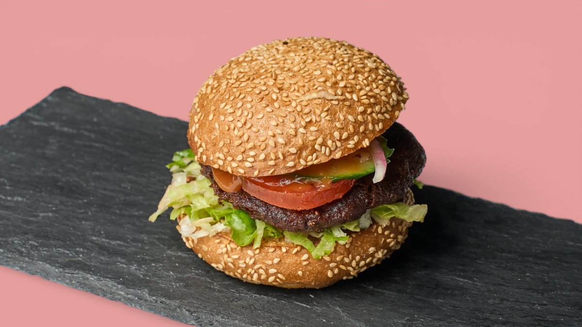 mit hausgemachtem Patty aus Kidneybohnen und Seitanmehl, Classic Soße, Salat, Zwiebeln, Tomate und Gurke, Standard-Beläge und einer Brötchensorte deiner Wahl