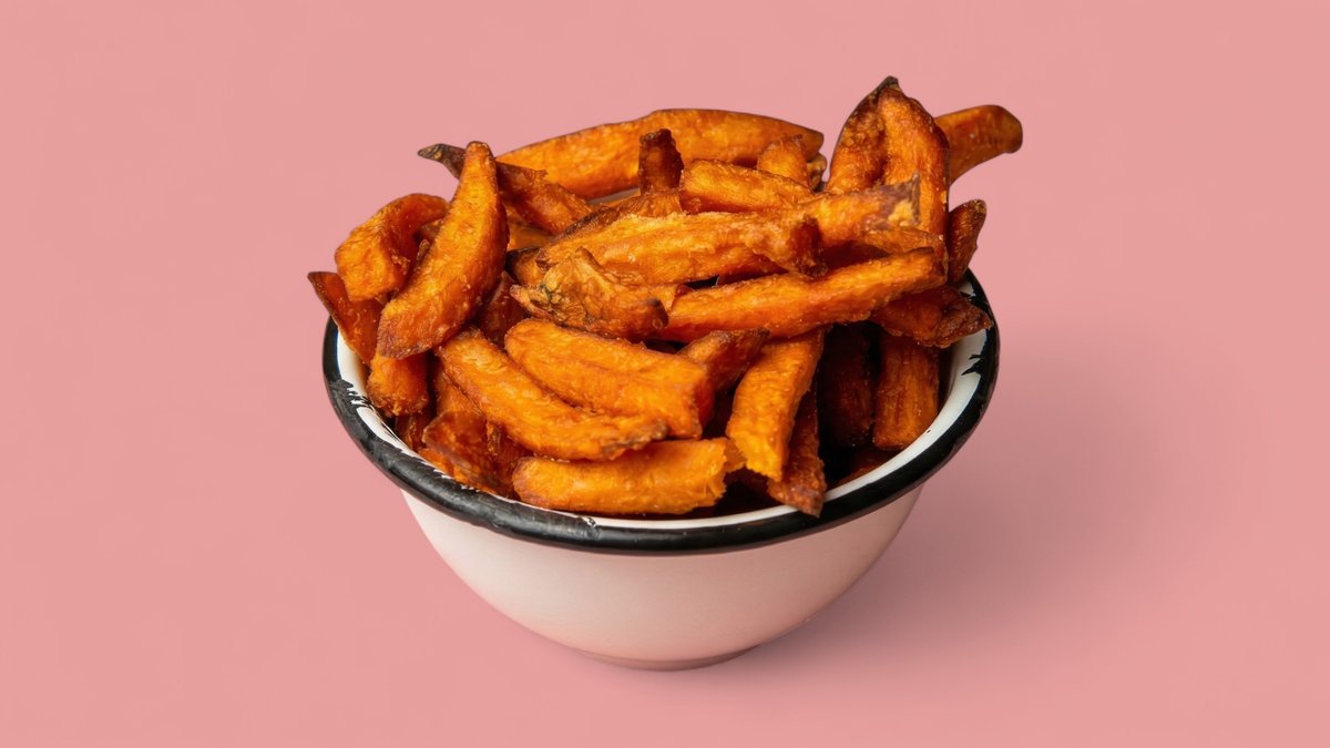 knusprige SĂĽĂźkartoffel-Pommes