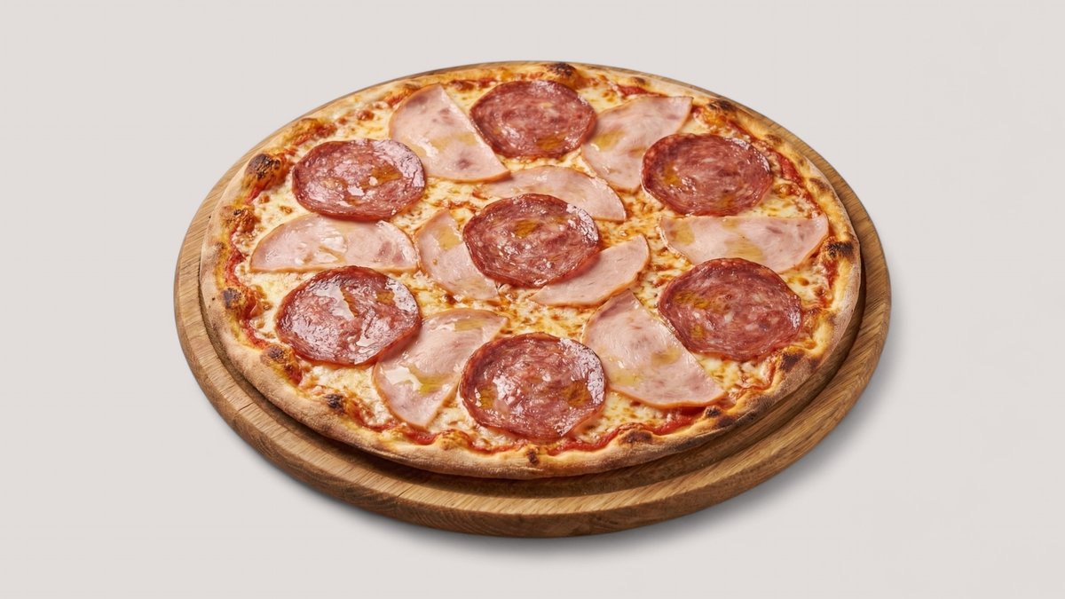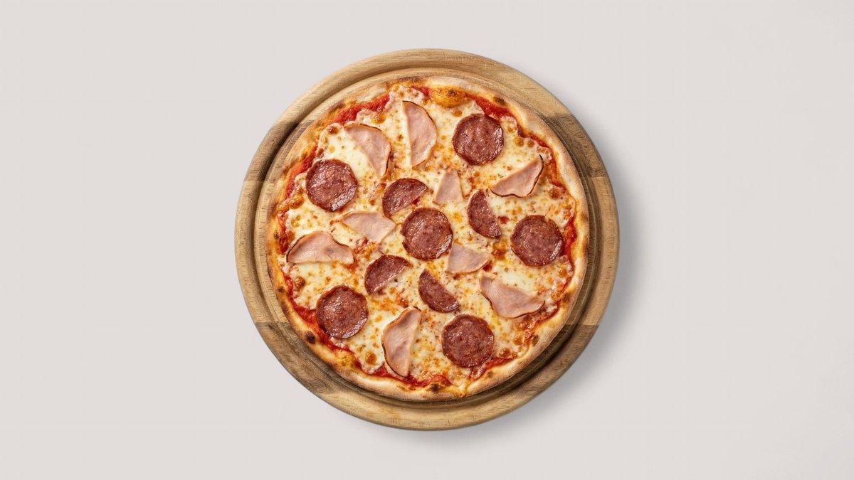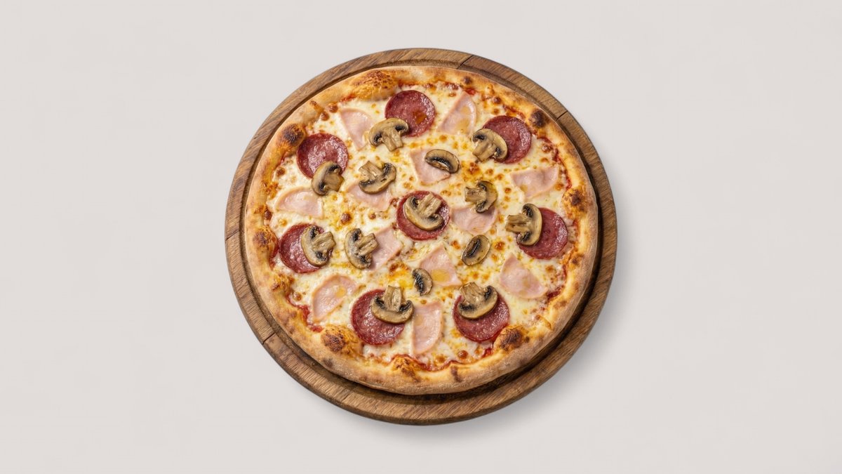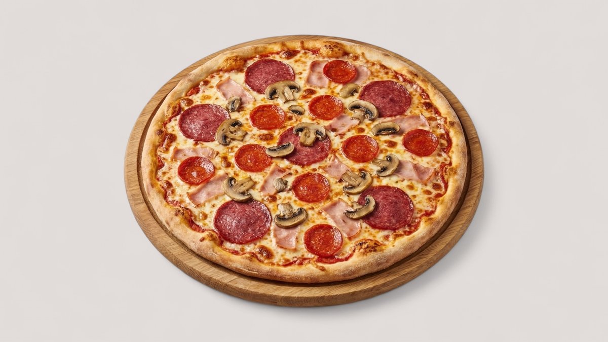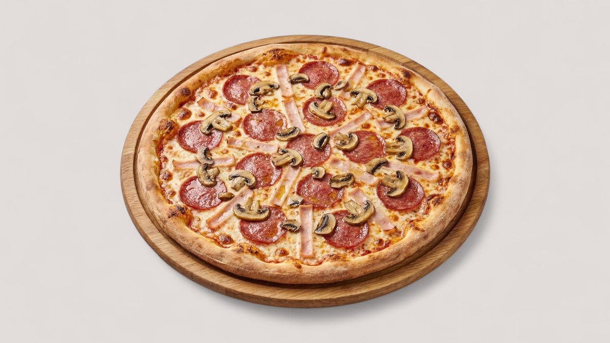 mit Rindersalami, Peperoni, Truthahnschinken und Champignons