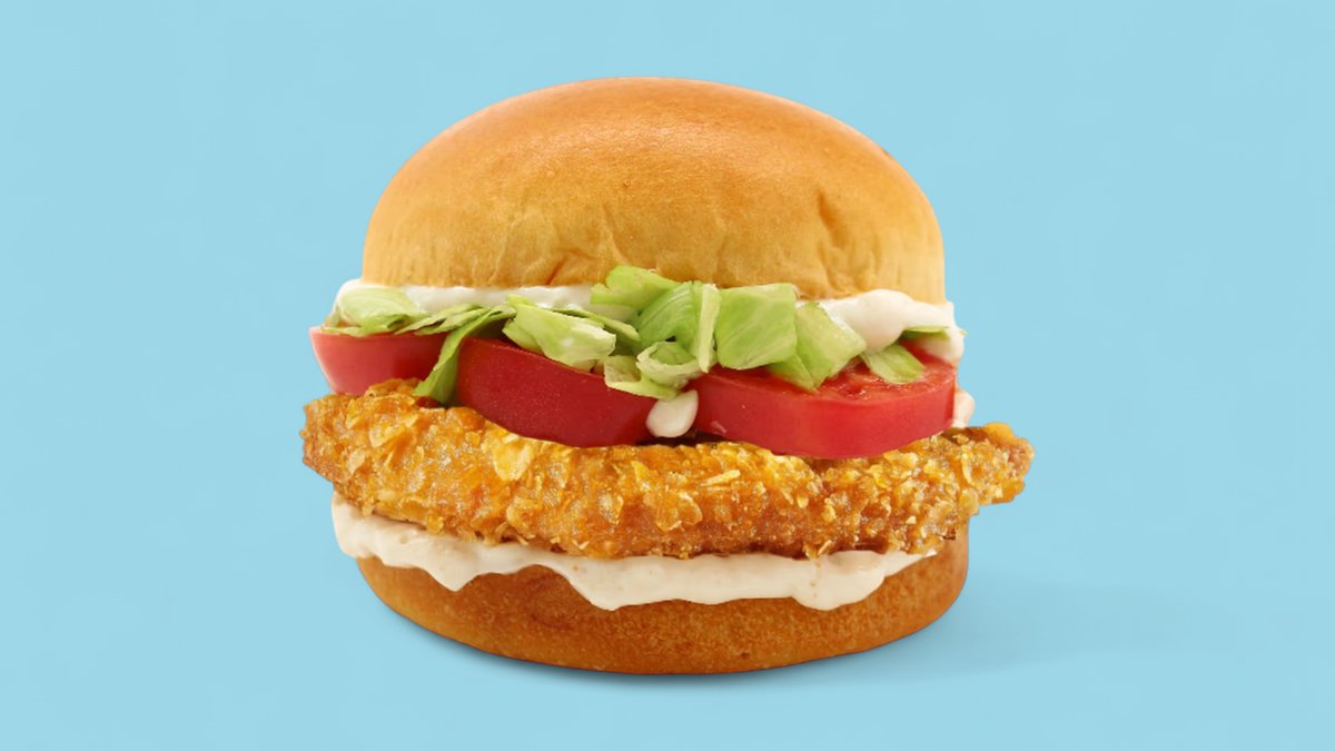 mit 100% naturgewachsenes Hähnchenbrustfilet, von Hand paniert Brioche Style Bun, hausgemachtem Ketchup, knackigem Salat, Röstzwiebeln und Cheddar