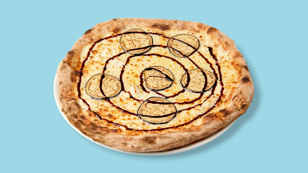 Creme fraîche, Auberginenscheiben, Ziegenkäse, Feigen-Balsamico