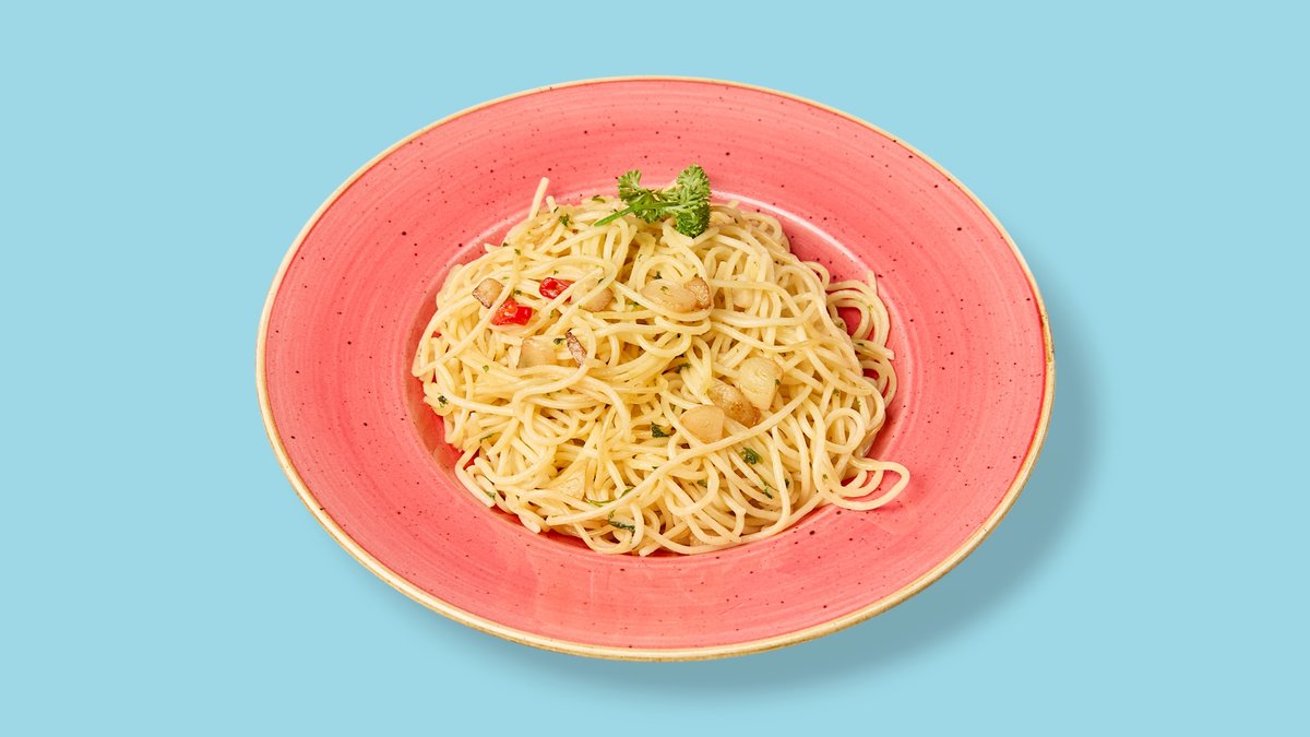 mit Olivenöl, Knoblauch, Peperoncini und glatter Petersilie
