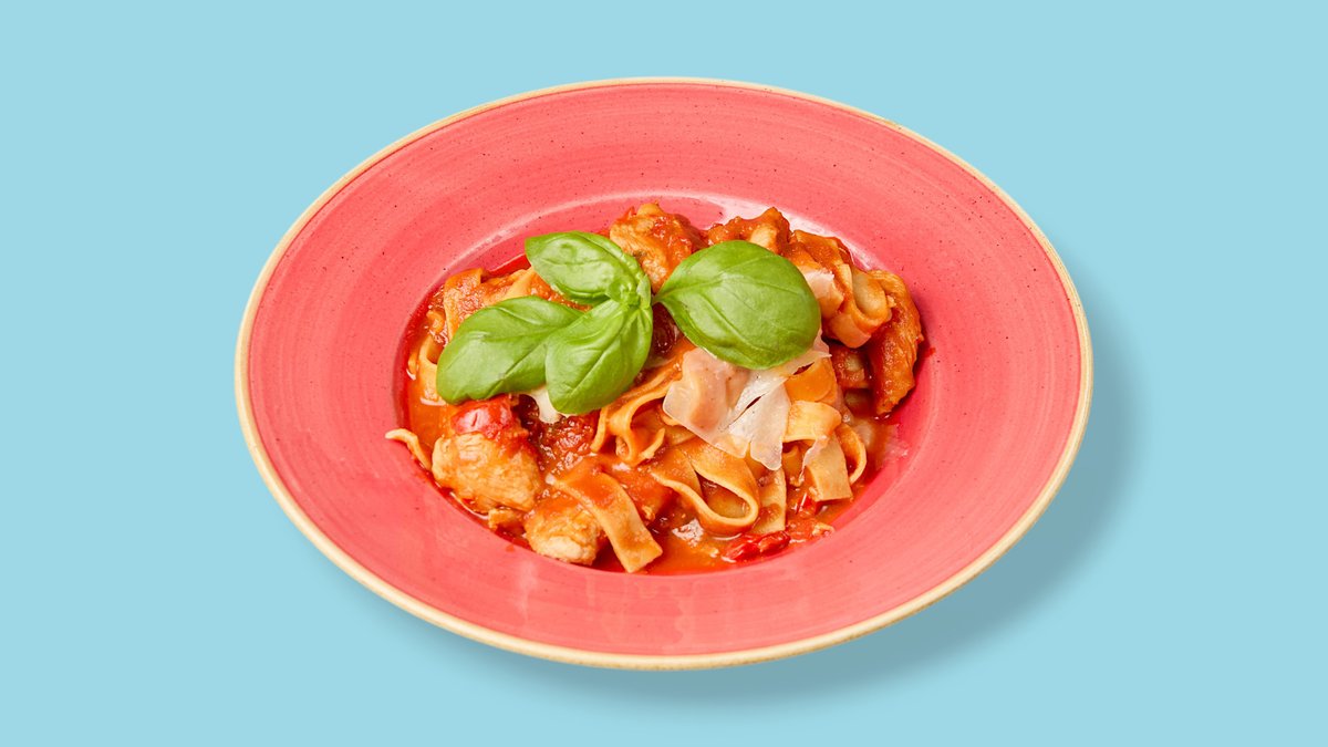 mit gegrilltem Hähnchenfleisch in Tomaten-Sahnesauce