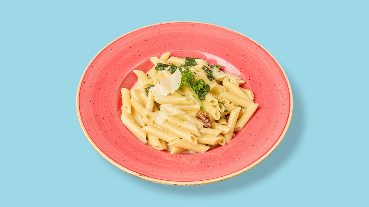 in feiner Rahmsauce mit Walnüssen, Gorgonzola und Blattspinat