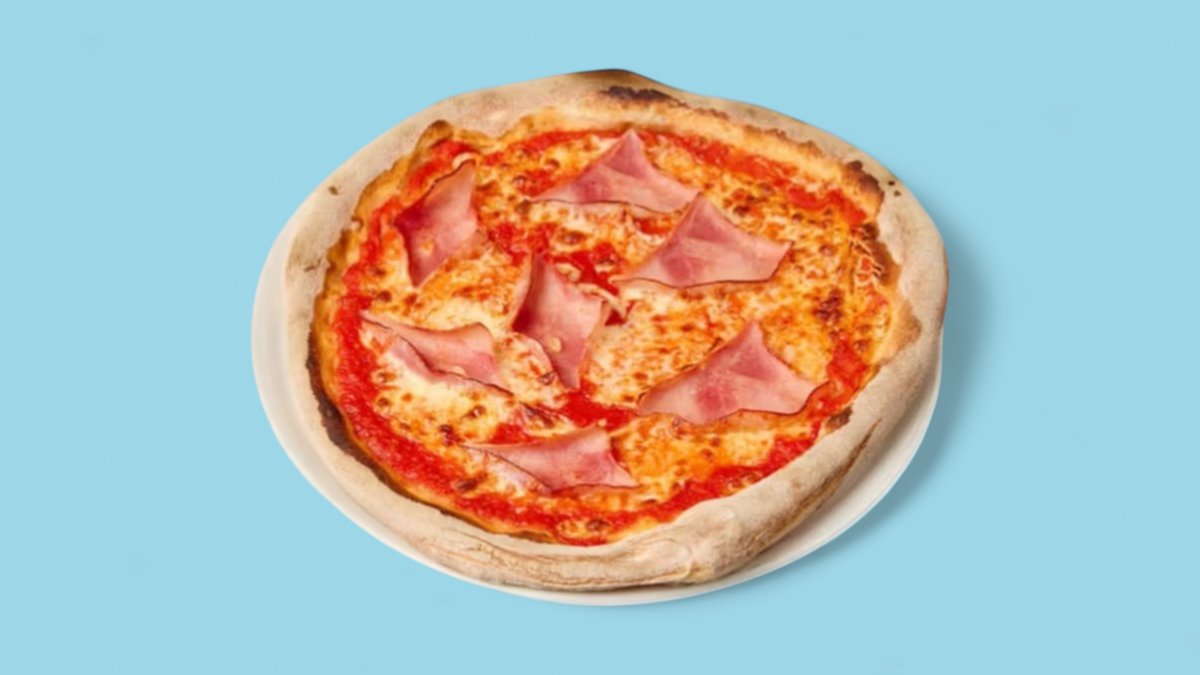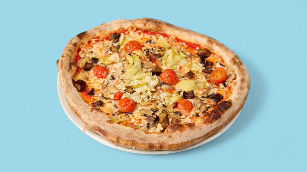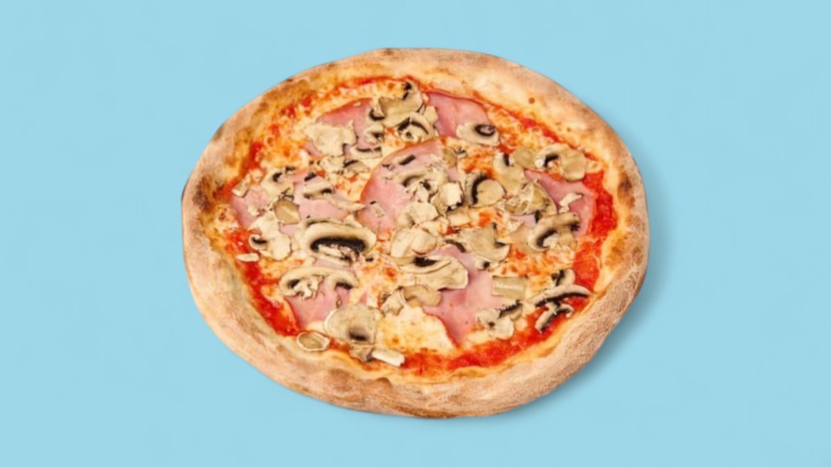 Tomatensugo, gekochter Schinken, frische Champignons, Artischocken, Oliven, Fior di Latte