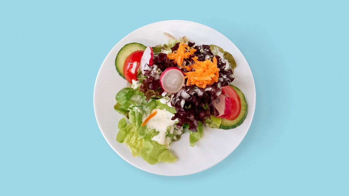 mit gebratenen Champignons, Schmand und kleinem Salatbouquet