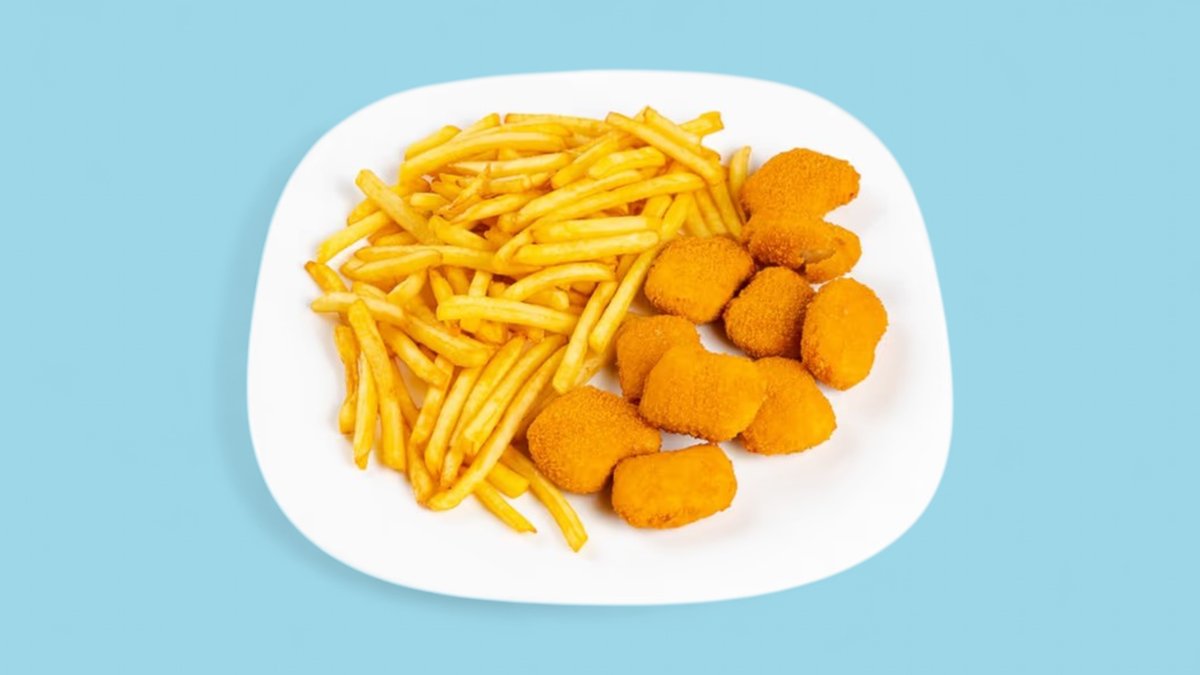 gefüllt mit Schinken vom Schwein und Käse, serviert mit Pommes frites