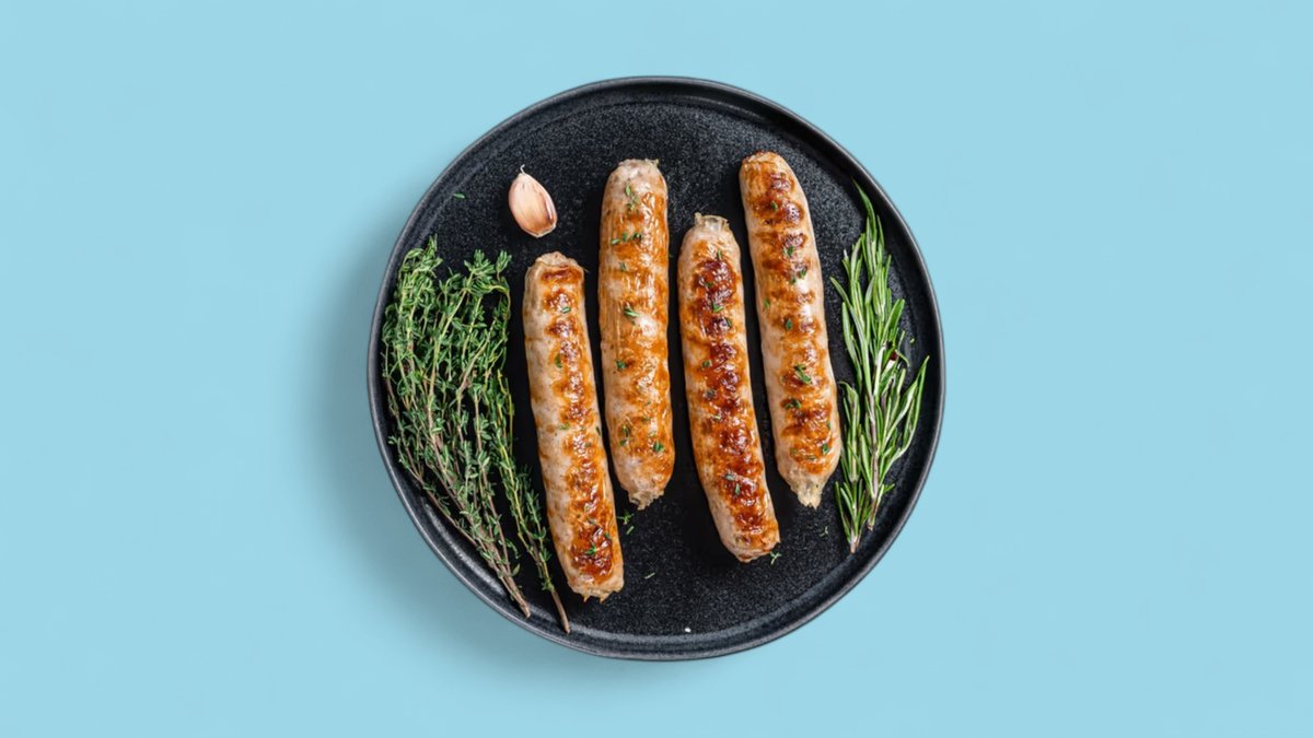mit Rostbratwürstchen vom Schwein und Kartoffelbrei