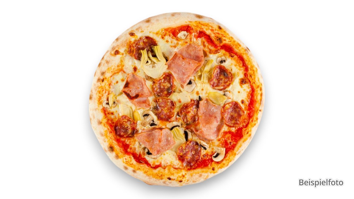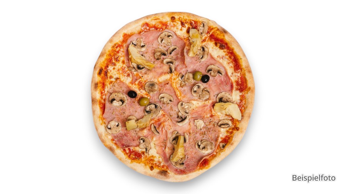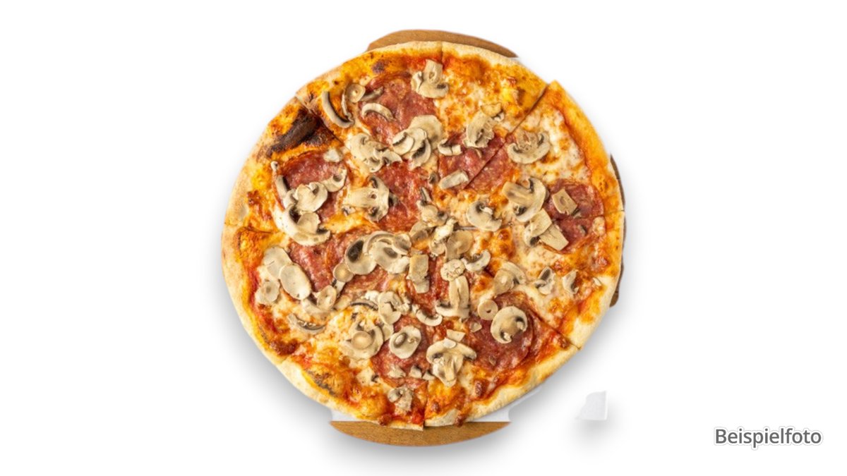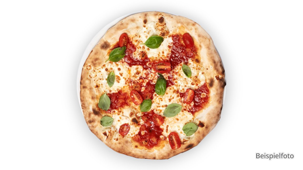 alle Pizzen werden in der Größe von Ø 44 cm sowie mit Tomatensoße und Käse zubereitet