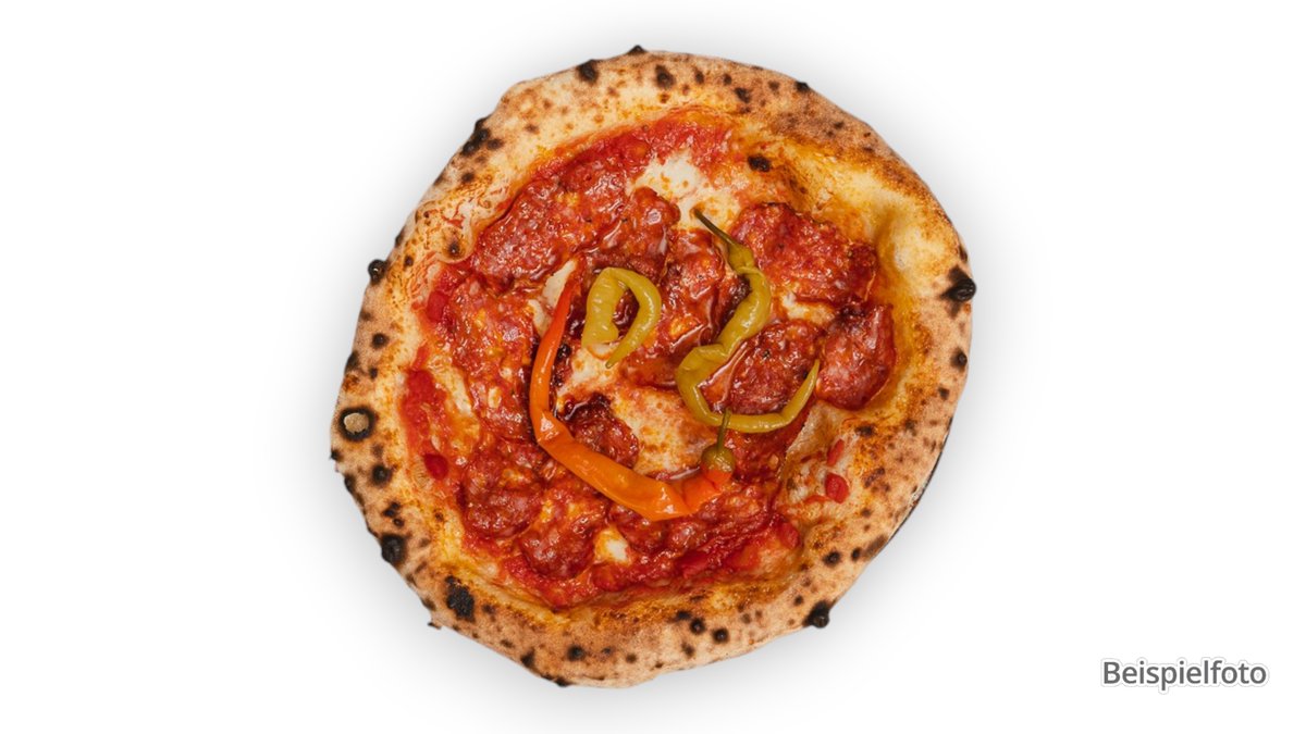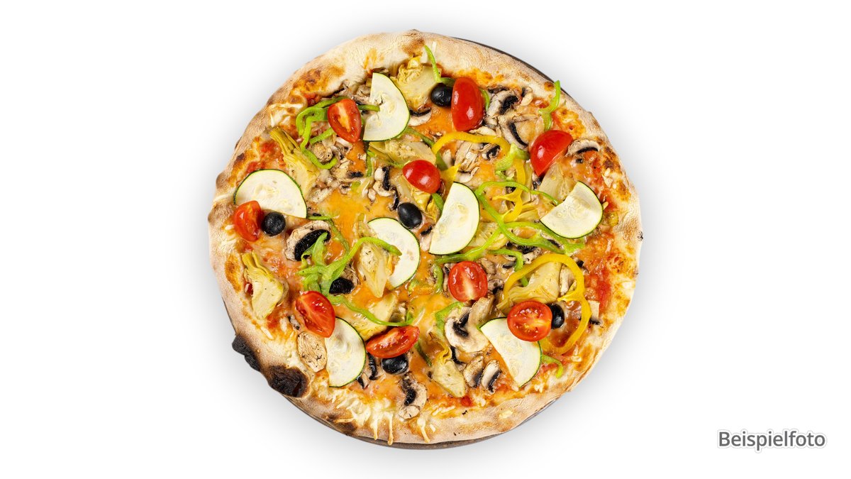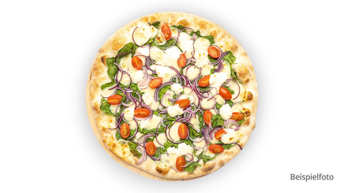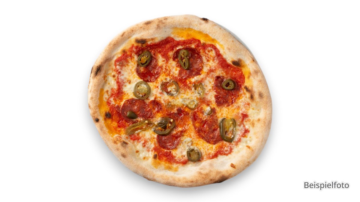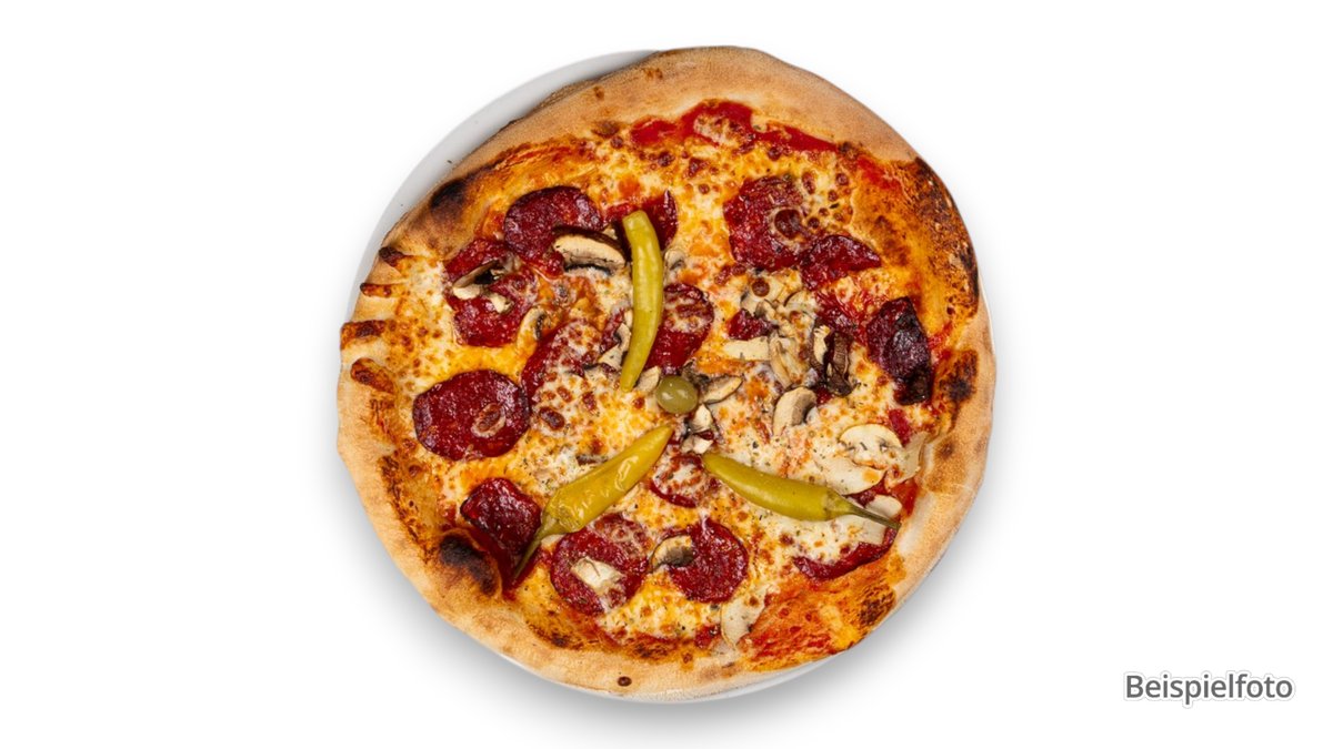 alle Pizzen werden in der Größe von Ø 44 cm sowie mit Tomatensoße und Käse zubereitet