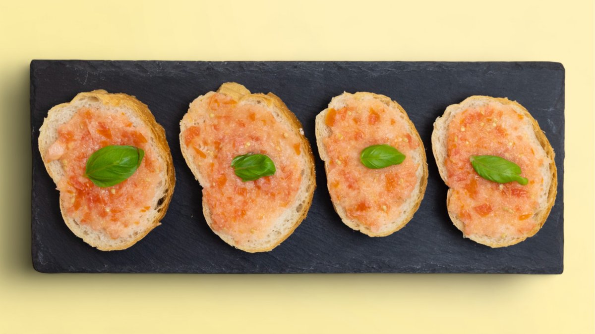 mit Weizenbrot, Tomaten, Basilikum, Knoblauch und Olivenöl