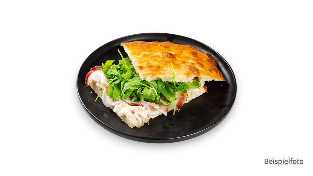 mit Parmaschinken, Rucola, Parmesan und Mozzarella