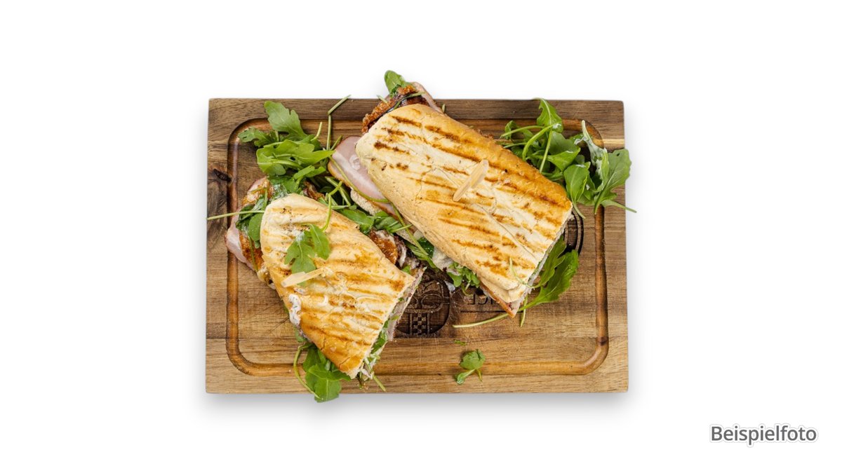mit Bresaola, Rucola, Mozzarella, Frischkäse und Soße