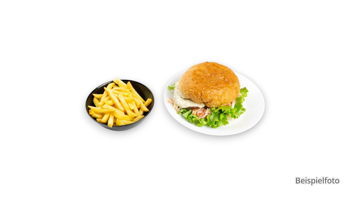 1x Hamburger 1x Pommes frites 1x alkoholfreies Getränk 0,33 I deiner Wahl