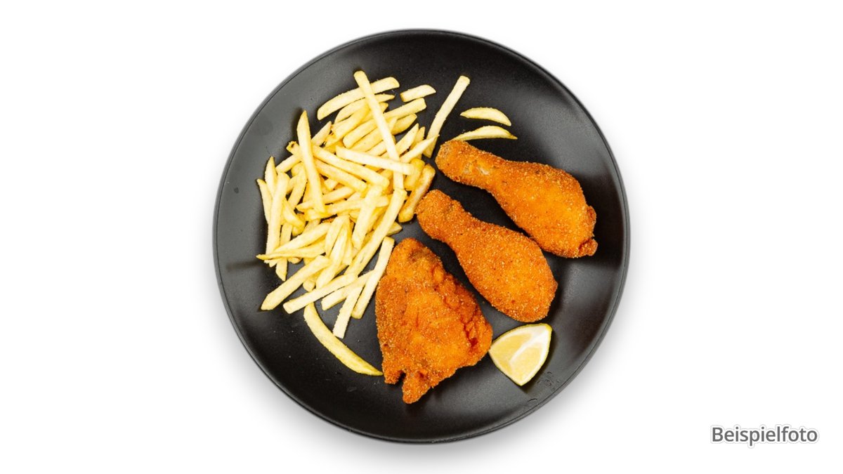 10 Stück Schweinefleisch mit Pommes frites