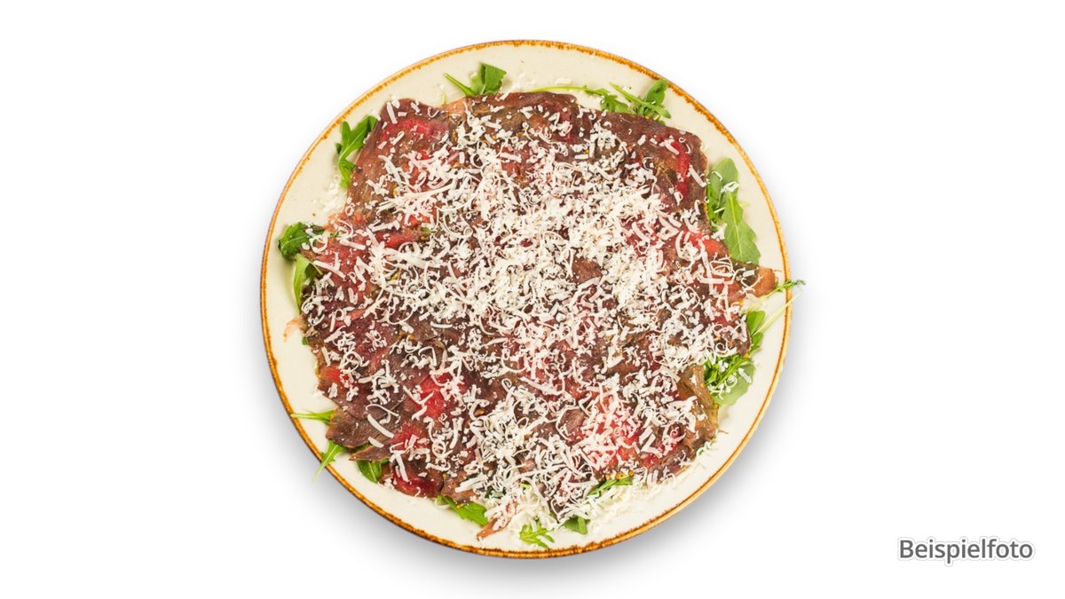 hauchdünne Rinderfiletscheiben mit frischer Rucola und gehobelten Parmesanstreifen
