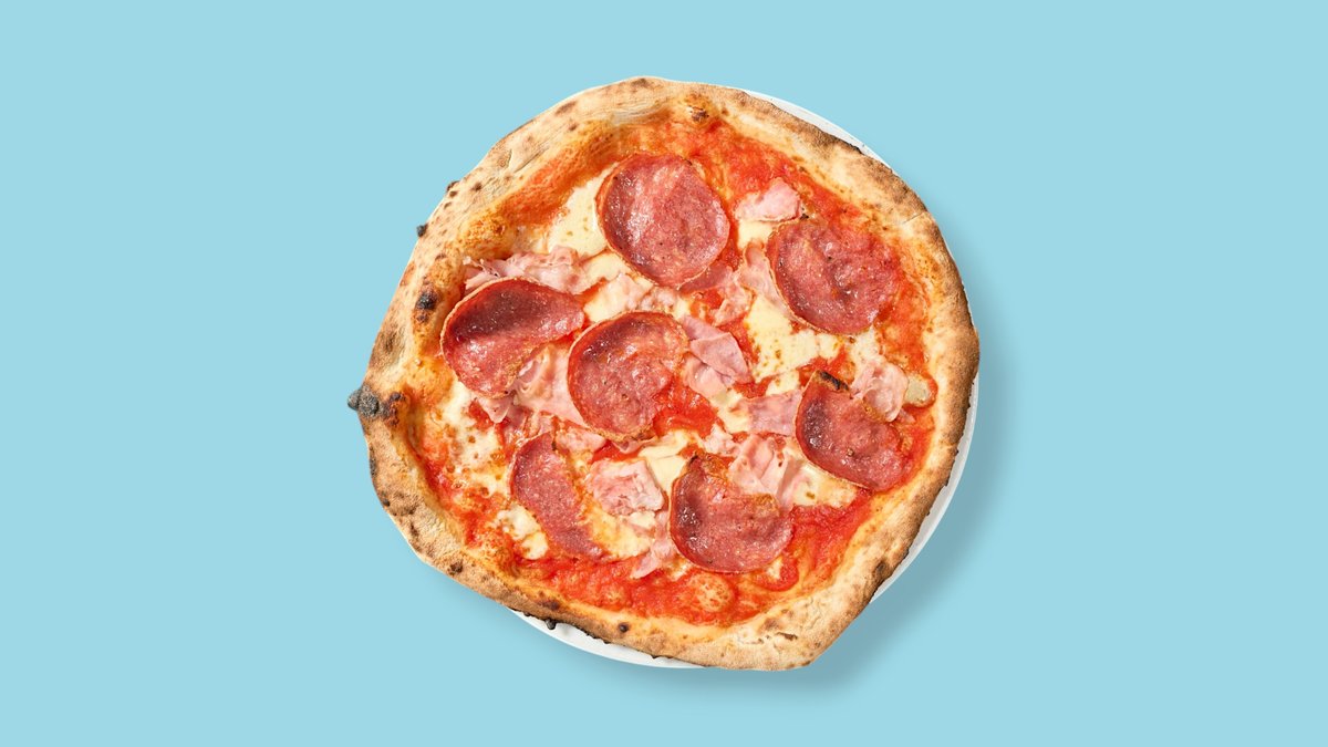 mit Mais, milden Peperoni und Spianata Calabrese (scharfe Salami vom Schwein)