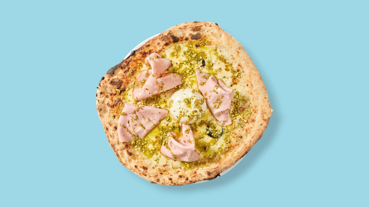 mit frischer Basilikum, Ricotta, Mortadella und Pistazien