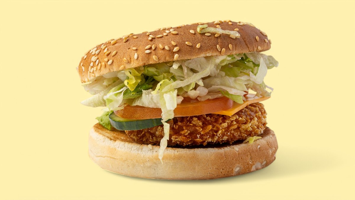 mit knusprig paniertem Hähnchenfilet, Eisbergsalat, Tomatenscheiben und Mayonnaise