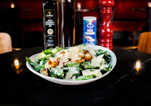 Romanasalat, Knoblauch-Croûtons, ital. Hartkäse, Caesaredressing