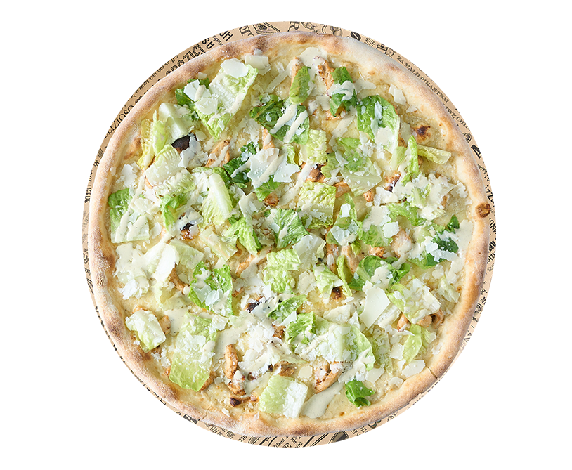 Mozzarella, frittierte Hähnchenbruststreifen, Romanasalat, ital. Hartkäse, Caesare-Dressing