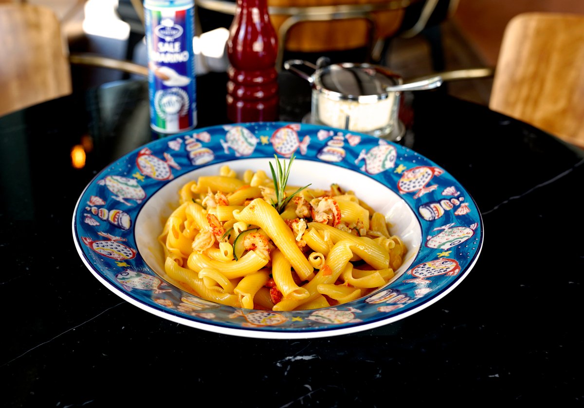 Flusskrebse, Karotten-Zucchini-Julienne, Zwiebeln, Hummersauce, Rosmarin