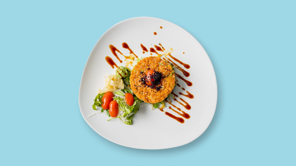 8x mit gebackenem Seidentofu, Mango, Gurke, Seetang Salat und oben Guacamole