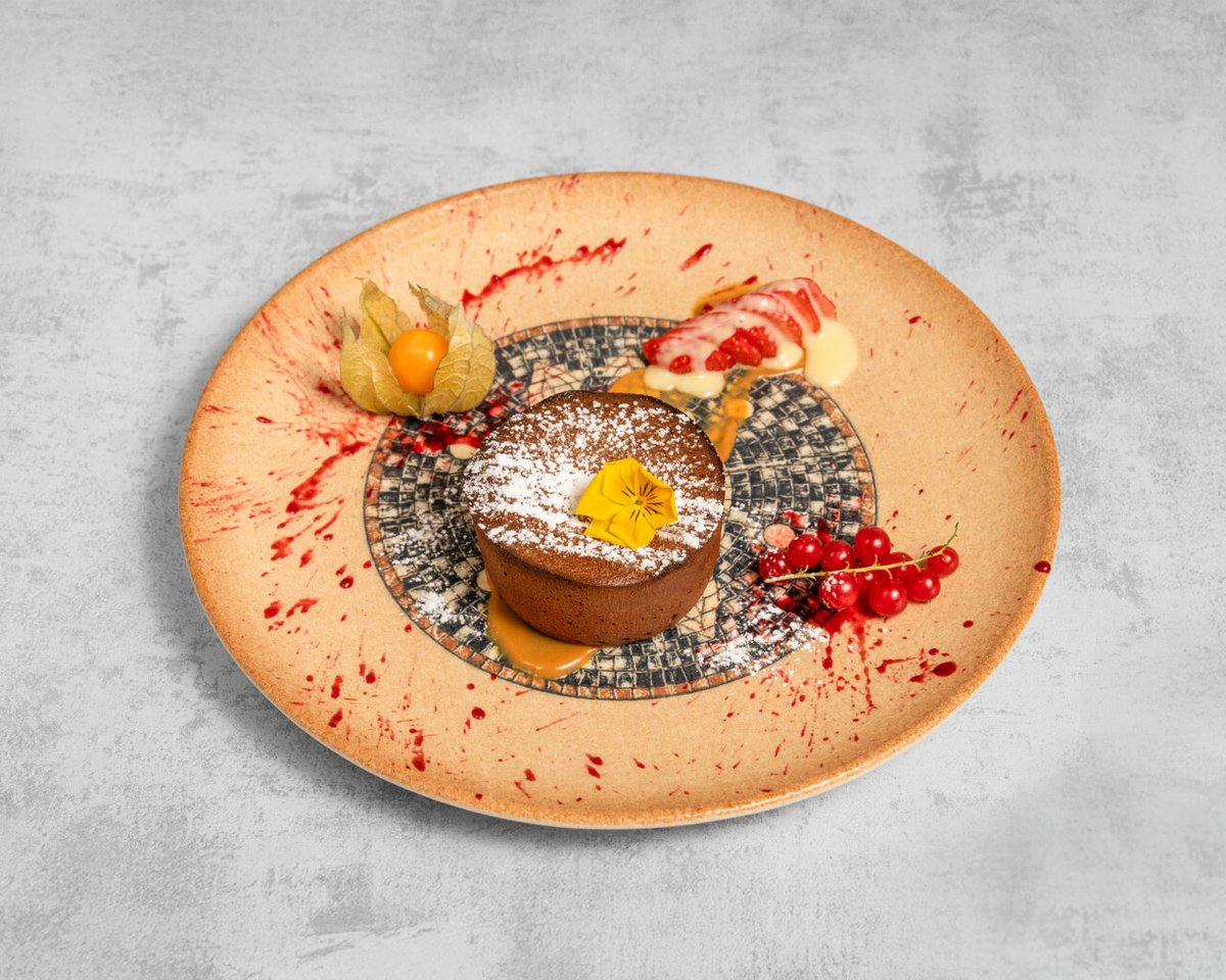 Fait maison, accompagné de sa boule de glace vanille et de dulce de leche, décoration du Chef.