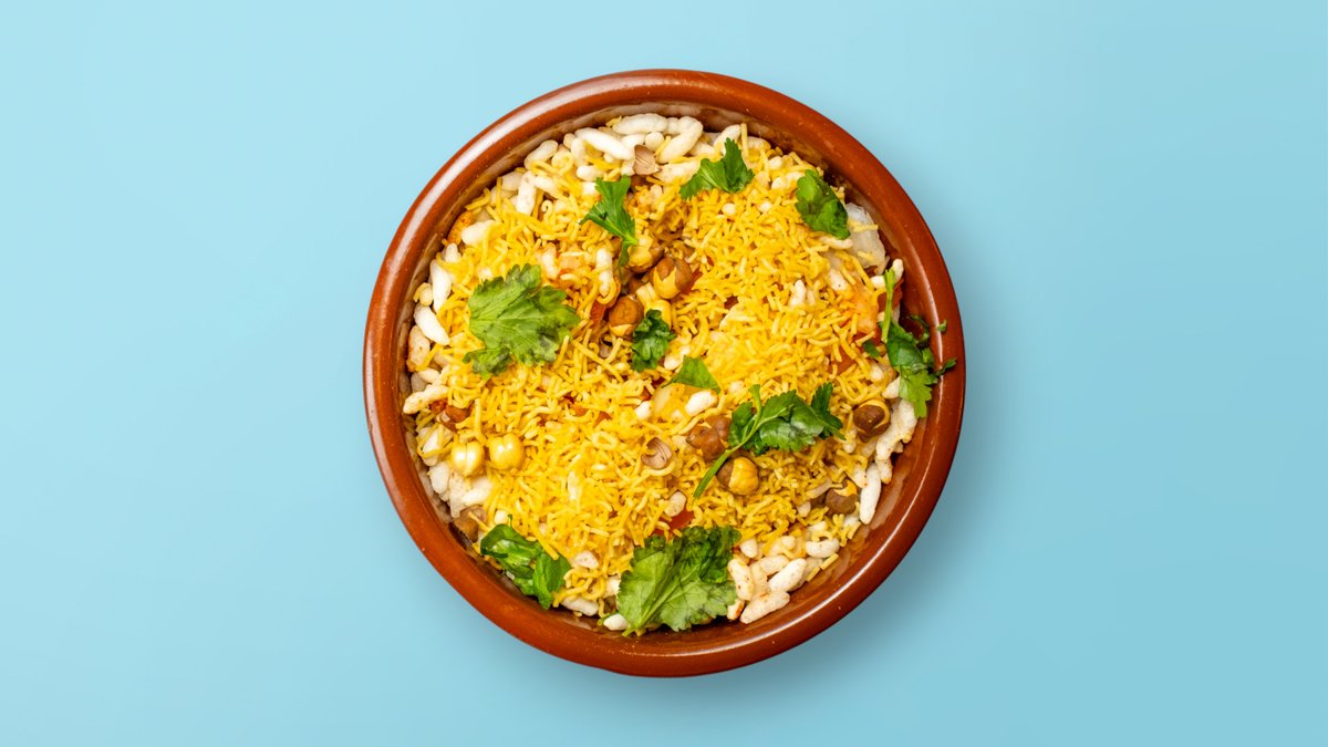 Crunchy puffed rice tossed with sev, chopped onions, tangy tamarind chutney, and fresh coriander-mumbai's favorite tangy treat.